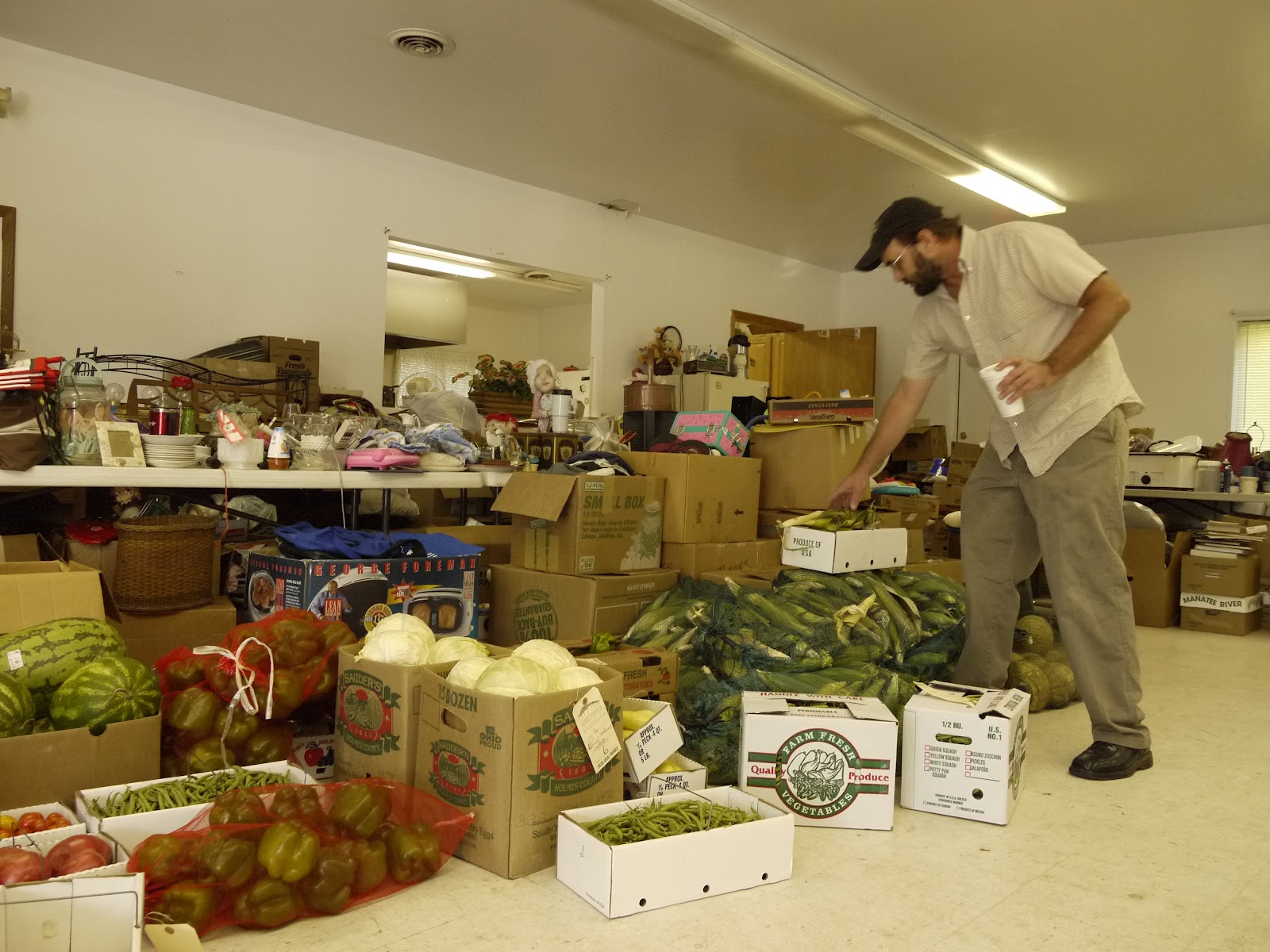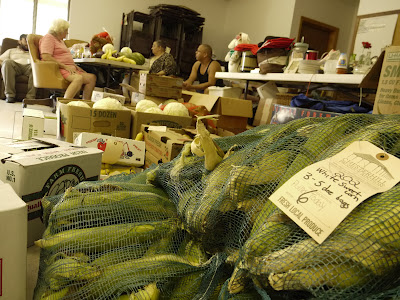 Susie Parsons, the head volunteer at the Kilvert Community Center, lit up with a smile as Rural Action Sustainable Agriculture team members brought in local fruits and vegetables fresh from the Chesterhill Produce Auction last week. Tom Redfern, Sustainable Agriculture Coordinator, and Joe Barbaree, the Sustainable Agriculture AmeriCorps VISTA, hauled two car-loads full of produce over winding country roads to the small, historically significant Appalachian community for a delivery loaded with everything from sweet corn straight out of the field to tomatoes grown along the Ohio River.